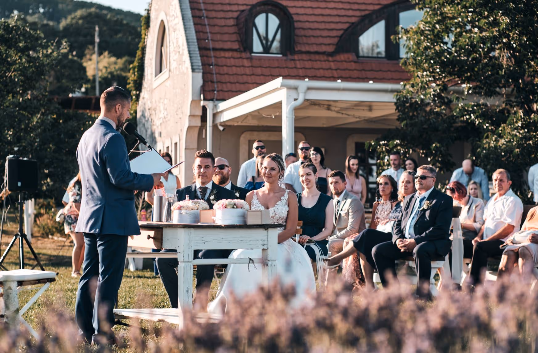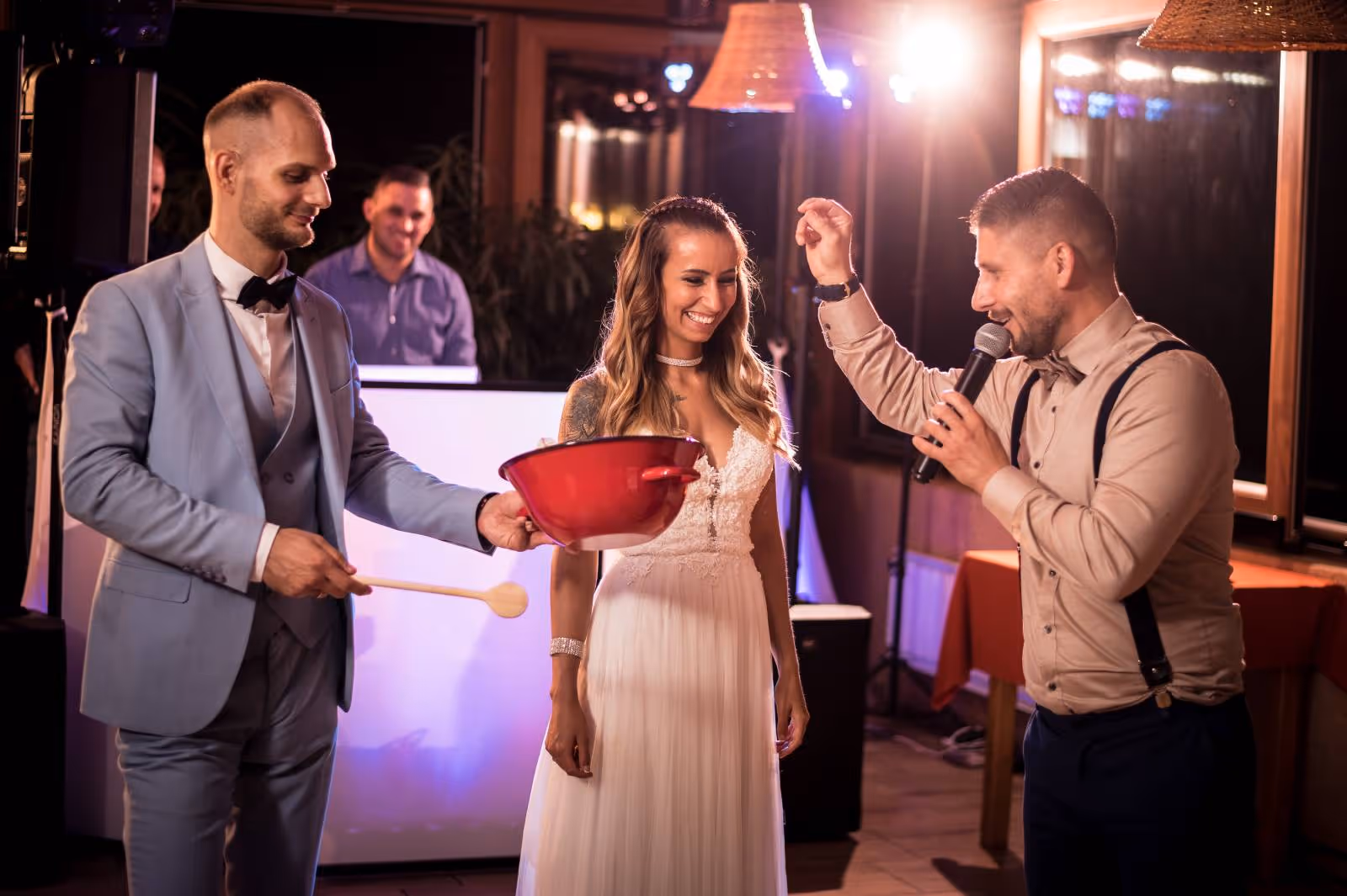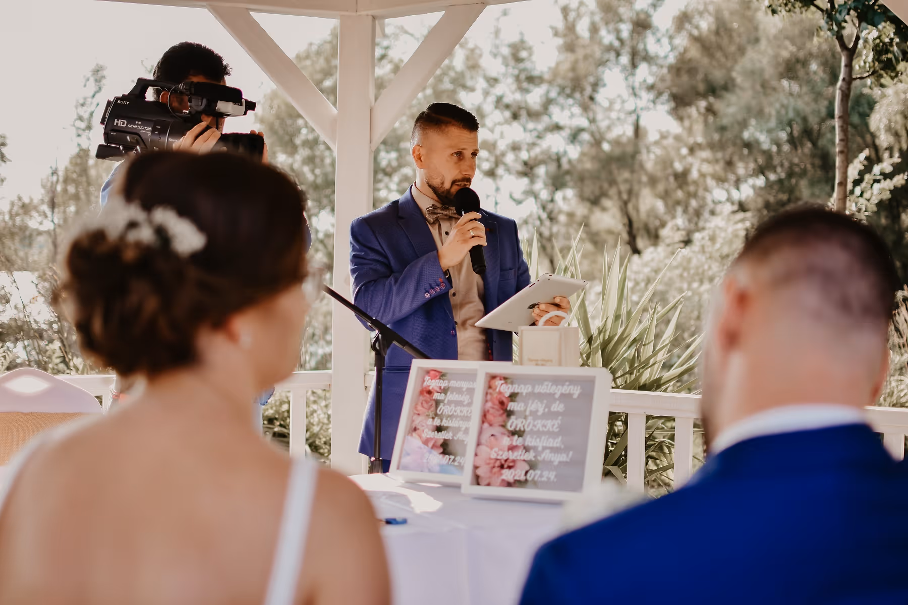 A jó ceremóniamester tapasztalt, segítőkész, határozott, talpra esett, magabiztos, de ugyanakkor alázattal van a rendezvény, és természetesen az ifjú pár iránt.