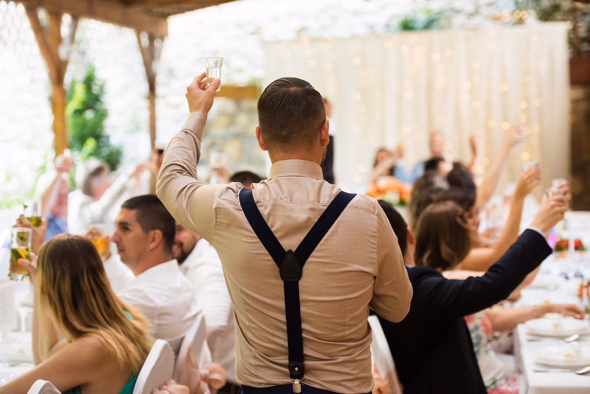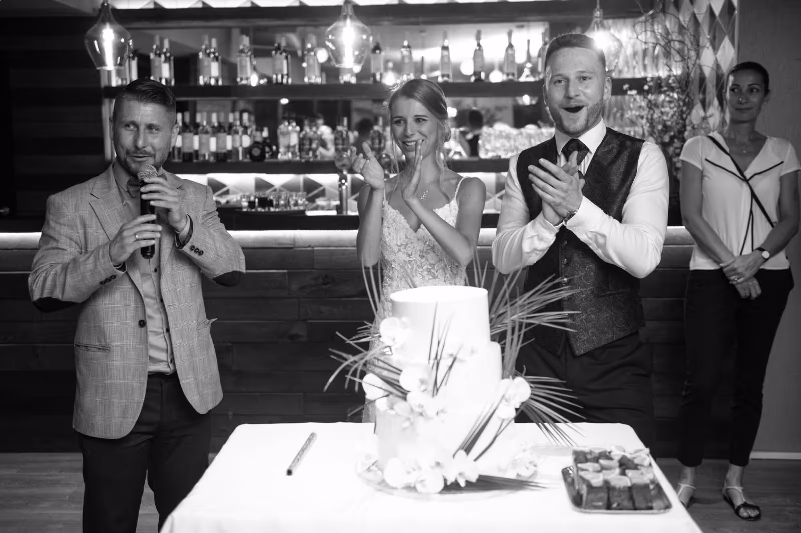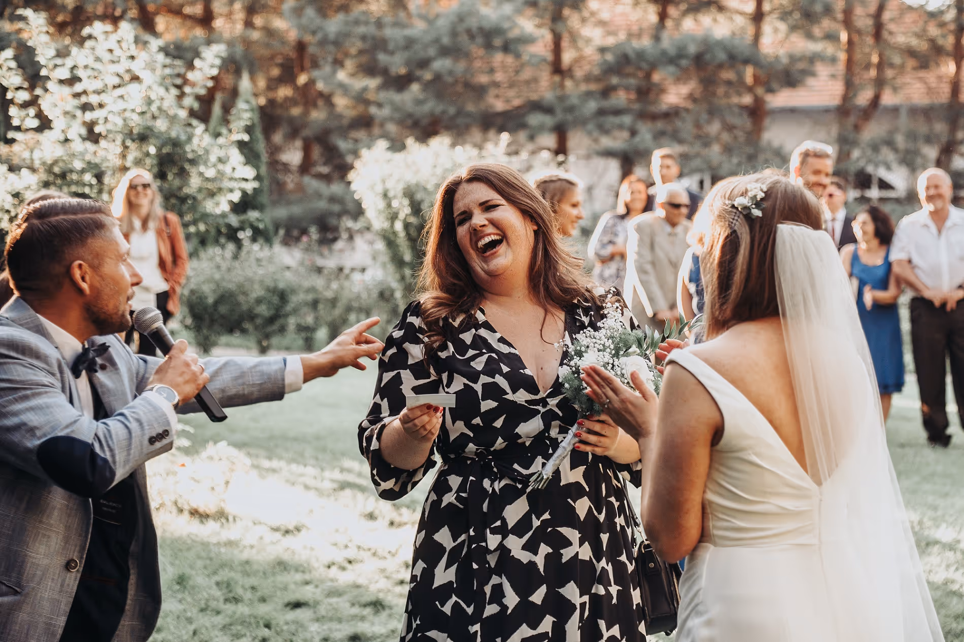 Megtalálja a kellő hangnemet a vendégekkel, a szolgáltatókkal, és természetesen az ifjú párral.