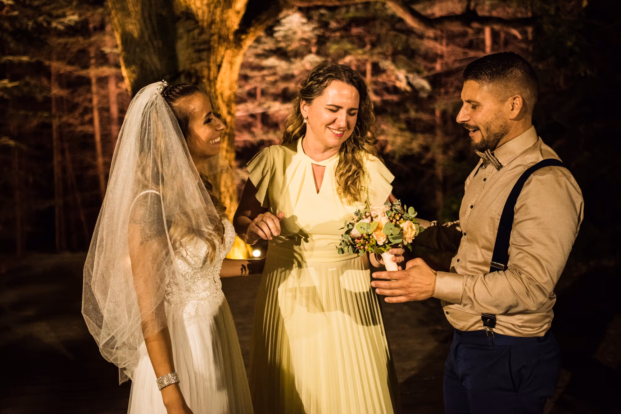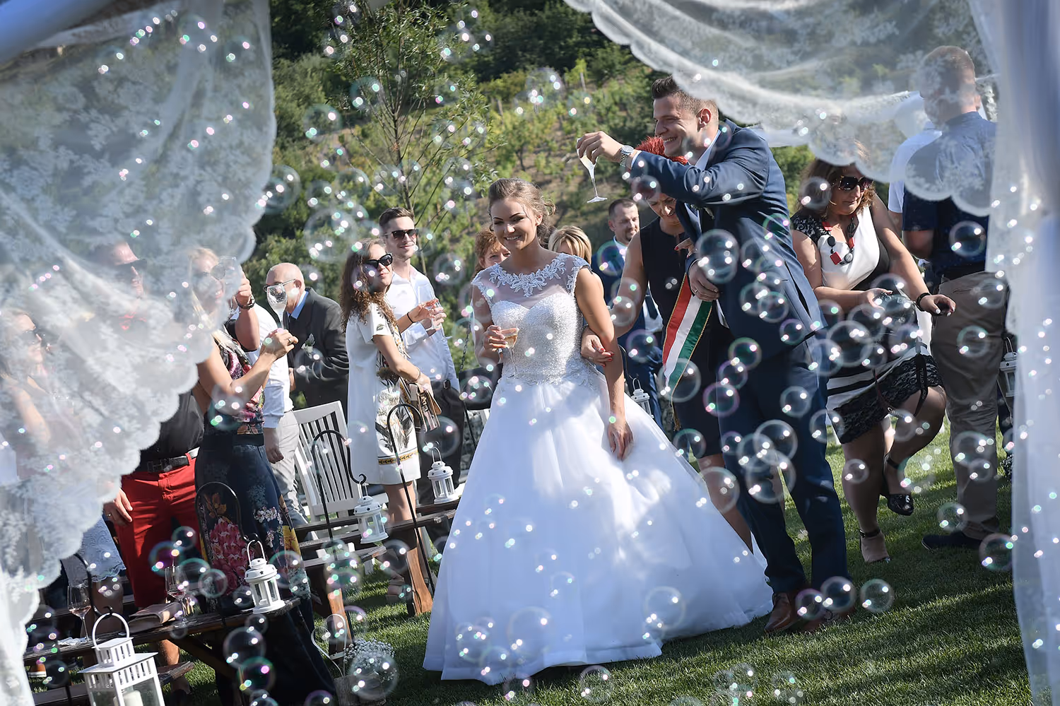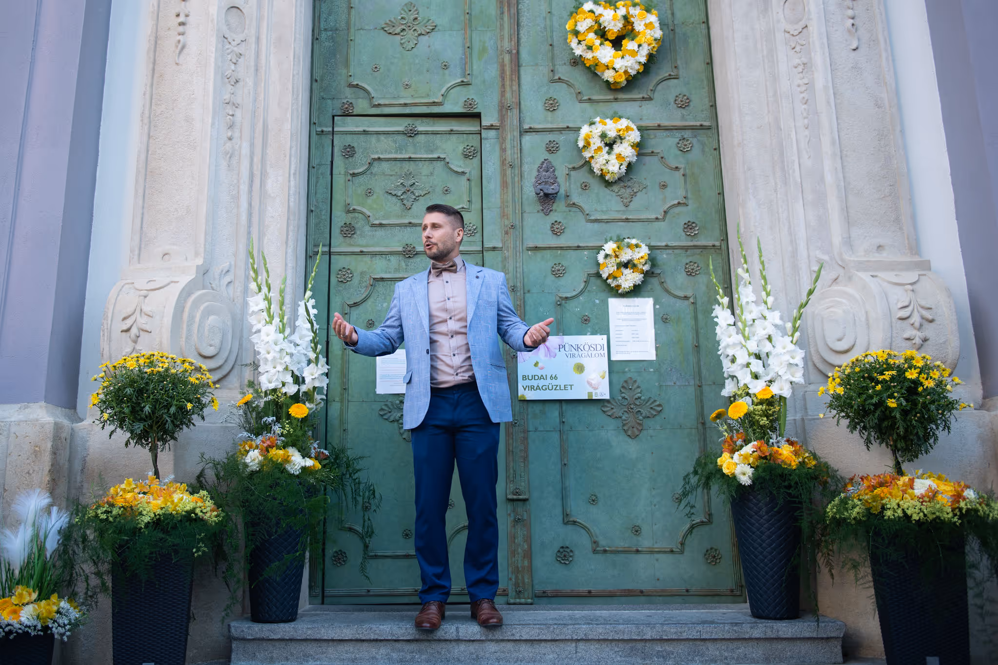Megtalálja a kellő hangnemet a vendégekkel, a szolgáltatókkal, és természetesen az ifjú párral.